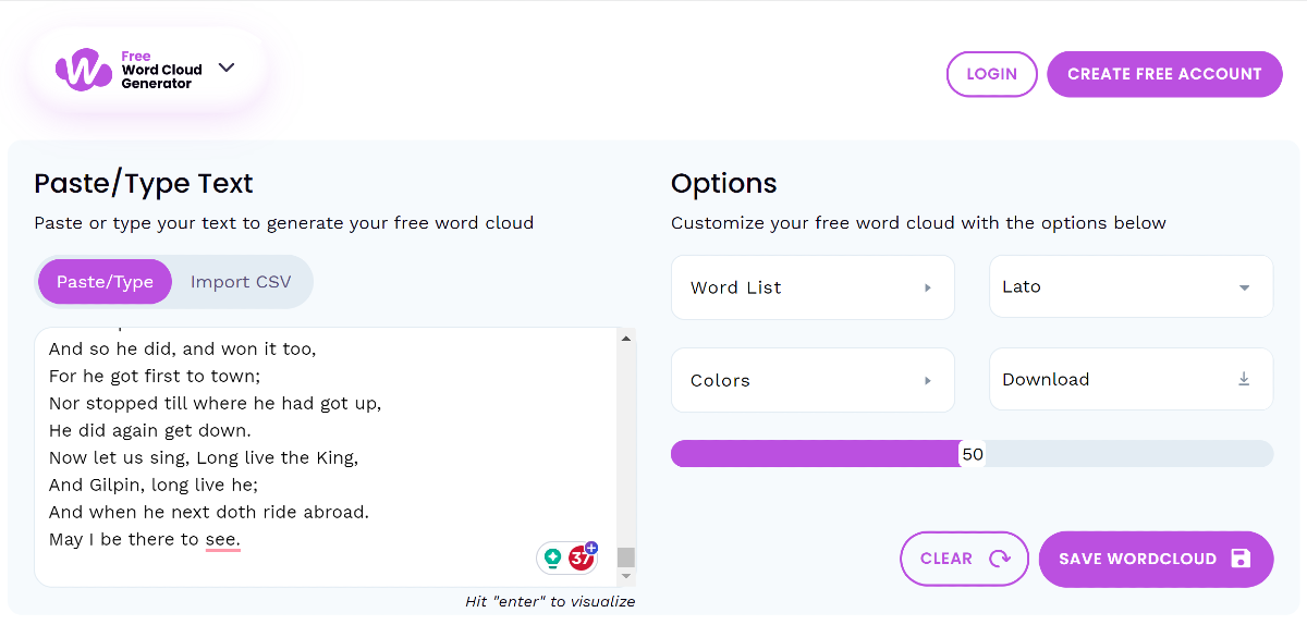 Etapa 1:Vá para https://www.wordclouds.com/.