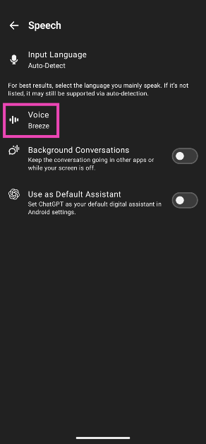 Altere a voz do assistente ChatGPT nas configurações do seu telefone