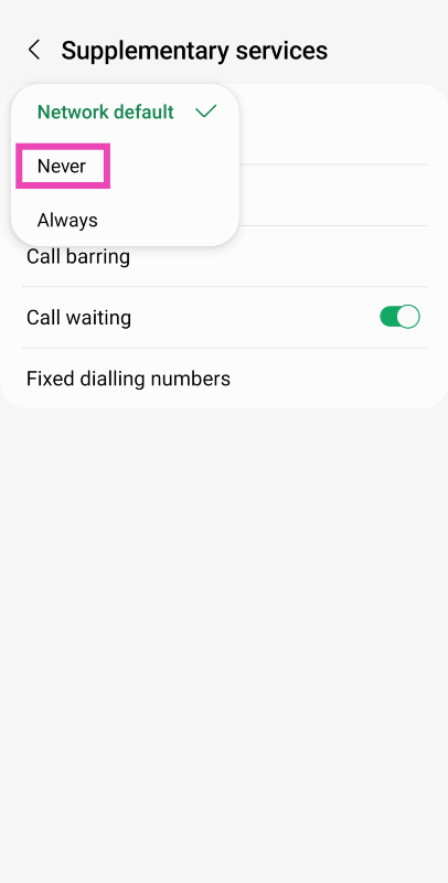 Etapa 3:Desligue a chave seletora paraMostrar meu identificador de chamadas.