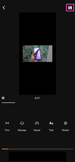 Etapa 6:Editaro GIF na página seguinte. Você pode optar por encurtar ainda mais o comprimento ou adicionar uma legenda, filtro ou adesivo a ele.