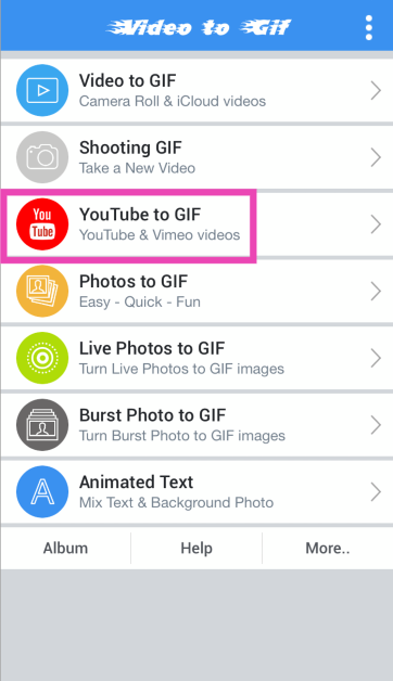 Etapa 2:Inicie o aplicativo e selecioneYouTube para GIF.