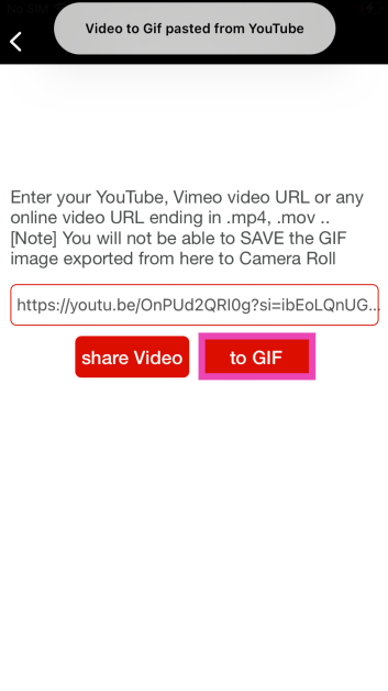 Etapa 3:Colaro link do vídeo do YouTube e selecionepara GIF.