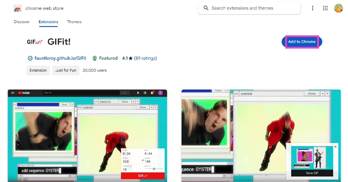 Etapa 1:ProcurarGIFit! na Chrome Web Storeeadicionarpara o seu navegador.