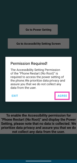 Etapa 2:Inicie o aplicativo e permita que eleacessar a configuração de energiado seu telefone.