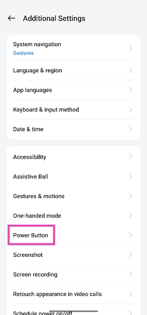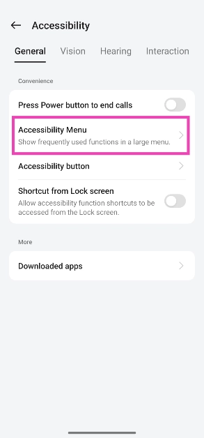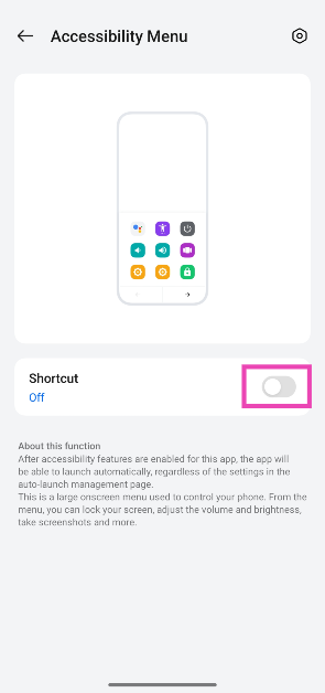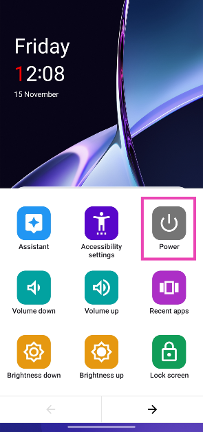 Vá paraConfigurações>Configurações adicionais>Acessibilidade>Menu Acessibilidade>Atalhoe ligue a chave seletora. Toque no ícone Acessibilidade na tela, clique no bloco ‘Power’ e selecione ‘Restart’.