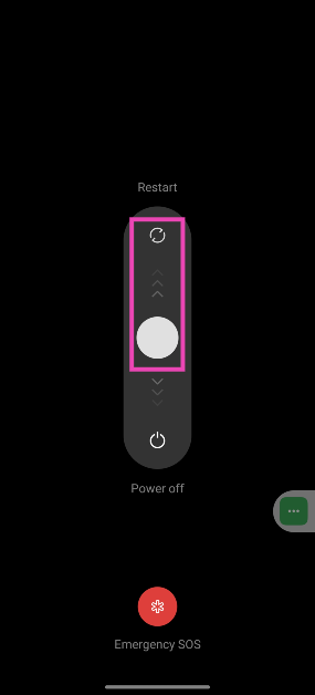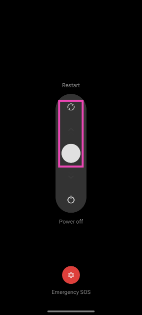 Pressione o botão de aumentar volume junto com a tecla lateral para acessar o menu de energia. Selecione ‘Reiniciar’ na lista. Alternativamente, você pode tocar no ícone de energia no menu de configurações rápidas para acessar o menu de energia.