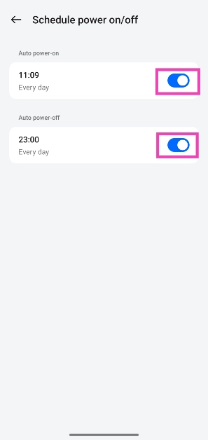 Etapa 4:Ligue a chave seletora ao lado deDesligamento automáticoe acerte a hora.