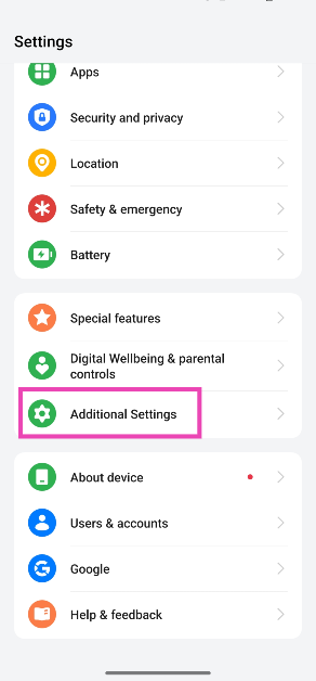 Etapa 1:Vá paraConfiguraçõese toque emConfigurações adicionais.