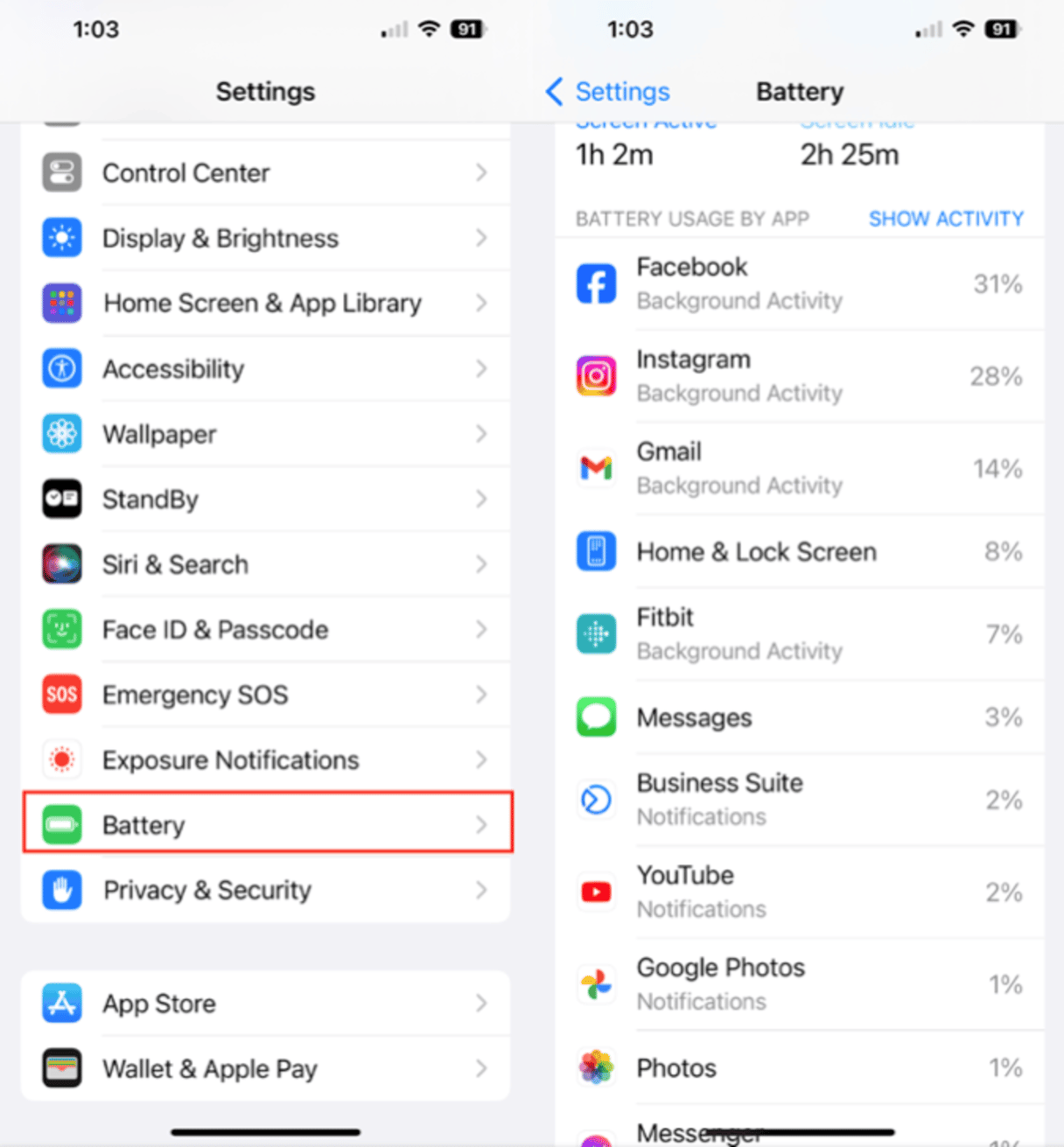 - Verifique o uso da bateria. Vá em Ajustes > Bateria para ver quais aplicativos consomem mais energia no seu iPhone. Você pode fechar esses aplicativos abrindo-os, deslizando para cima, pausando o movimento e deslizando novamente para fechá-los.