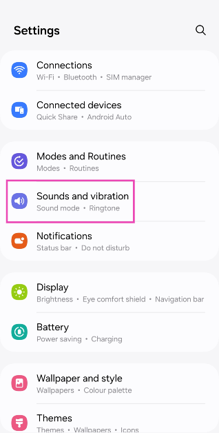 Etapa 1:Vá paraConfiguraçõese selecioneSom e vibração.
