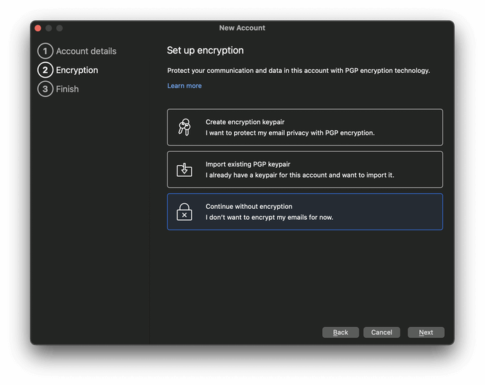 O eM Client oferece suporte a PGP pronto para uso. Você está convidado a configurá-lo ao instalar o programa.