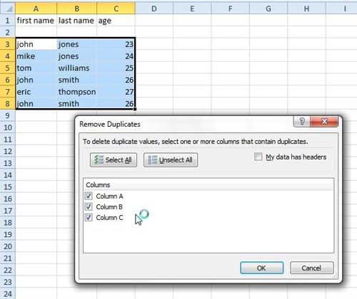 Etapa 5: clique noOKbotão para remover as duplicatas das colunas que você selecionou.