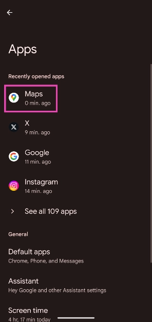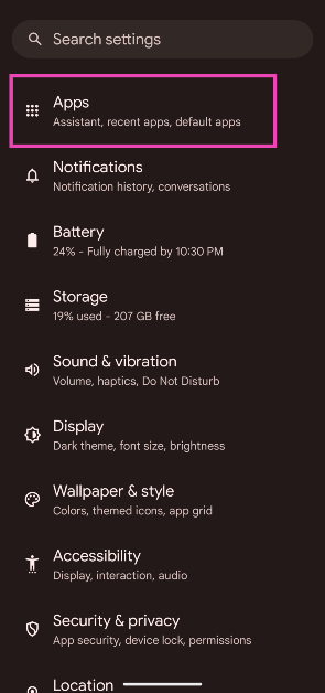 Etapa 1:Vá paraConfiguraçõese selecioneAplicativos.