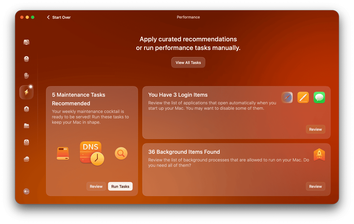 Se você encontrar pastas de Group Containers realmente grandes, é importante manipulá-las com segurança. Em vez de apenas clicar em excluir, primeiro executo algumas tarefas de manutenção e limpeza no meu Mac para ver se consigo reduzir o tamanho do arquivo. eu usoLimparMeuMacpara ajudar nessas tarefas, para que eu possa ter certeza de que nada de importante será removido. Veja como: