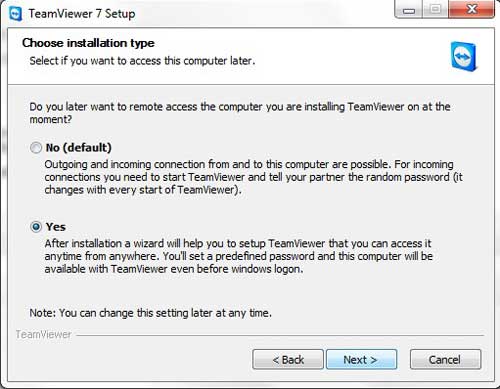 CliqueSimpara poder acessar seu computador a qualquer momento e clique no botãoPróximobotão.