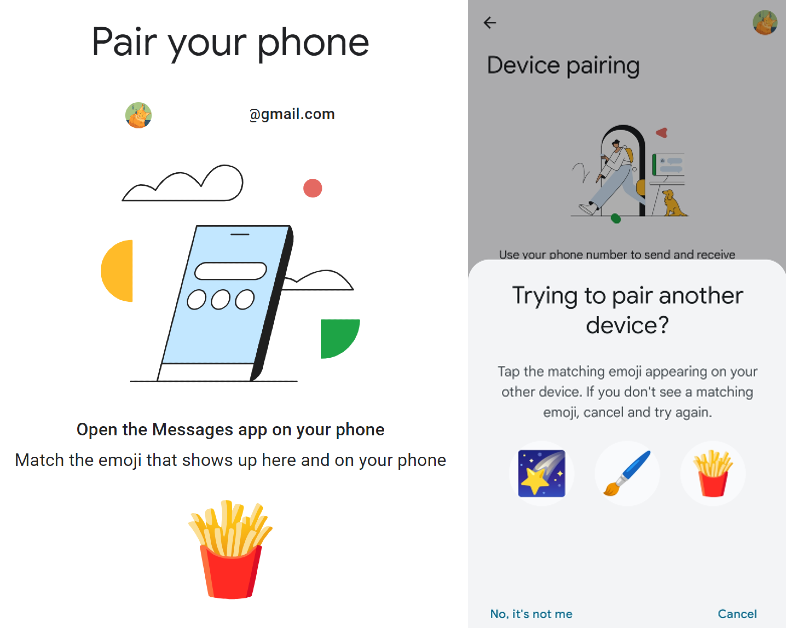 Com a capacidade de vincular sua Conta do Google ao aplicativo Mensagens, o processo de emparelhamento de outros dispositivos ficou muito mais fácil. Você não precisa mais escanear um código QR para acessar seus textos. Basta fazer login usando sua Conta do Google no portal de Mensagens, selecionar o emoji que você vê no seu smartphone e pronto!