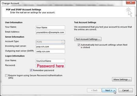 Passo 5: Clique dentro doSenhacampo, exclua a senha de e-mail antiga e insira a nova senha. Clique noPróximobotão quando terminar.