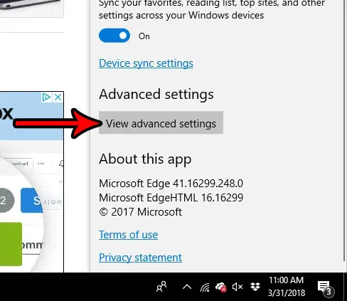 Etapa 4: role para baixo e clique no botãoVer configurações avançadasbotão.