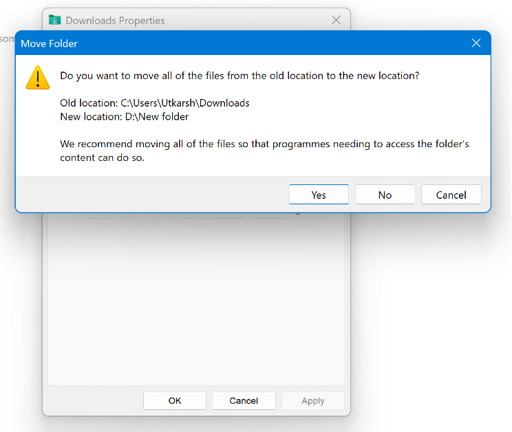 Etapa 6:Você será perguntado se desejamoveros arquivos da pasta Downloads atual para a nova. SelecioneSimouNão.