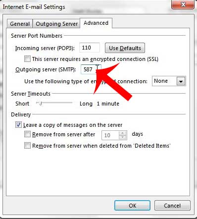 Felizmente, isso geralmente pode ser resolvido simplesmente trocando sua porta de saída para uma porta diferente que não está sendo bloqueada. Você pode ler nossas instruções abaixo sobre como alterar sua porta de e -mail de saída no Outlook 2013 para que você possa começar a enviar mensagens novamente.