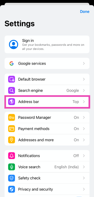 Você também pode alterar a posição da barra de endereço nas configurações do Chrome.