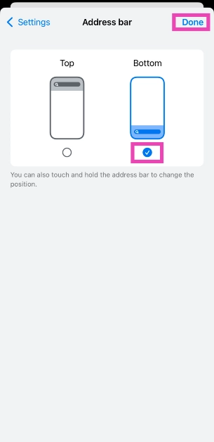 Etapa 2:Toque emMova a barra de endereço para baixo.