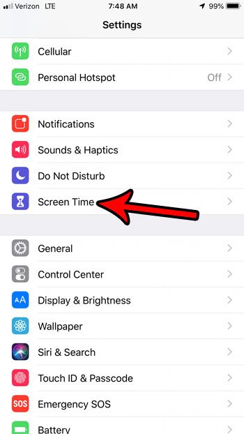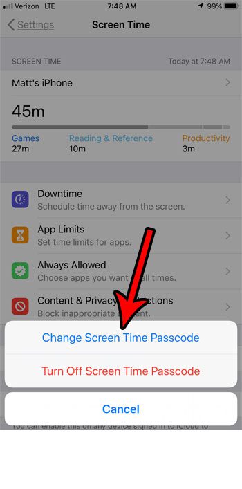 Nosso artigo continua abaixo com informações adicionais sobre como alterar a senha de tempo de tela do iPhone, incluindo imagens dessas etapas.