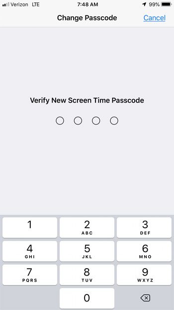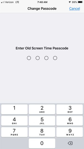 Alterar a senha do tempo de tela não afetará nenhuma das configurações atuais que você configurou para o recurso. Isso simplesmente altera a senha necessária se você quiser fazer alterações nela no futuro.
