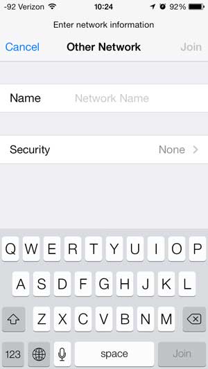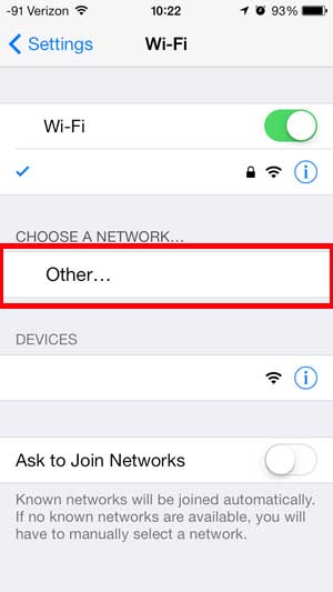 Conectando-se a uma rede sem fio que você não vê na lista do iPhone 5