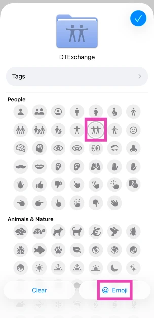 Etapa 4:Escolha umíconena lista ou toque emEmojie faça uma seleção.