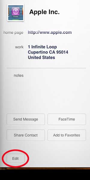 Etapa 3: toque noEditarbotão na parte inferior da página de contato no lado direito da tela.
