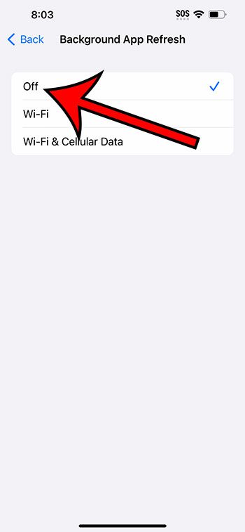 Nosso guia continua abaixo com mais informações sobre como fazer o iPhone parar de atualizar aplicativos em segundo plano, incluindo fotos dessas etapas.