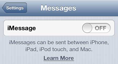 Etapa 4: mova o controle deslizante para a direita deMensagens MMSpara oDesligadoposição.