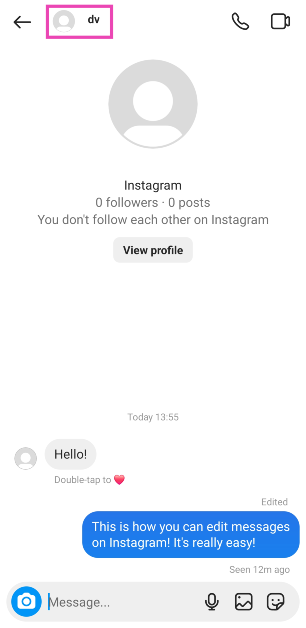 Depois de editar uma mensagem no Instagram, sua versão anterior não ficará visível para o destinatário.