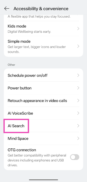 Como habilito o AI Search em meu telefone OnePlus?