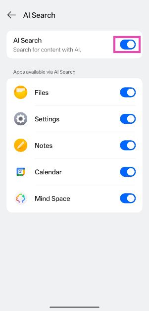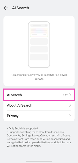 O AI Search pode ser acessado no Global Search and Shelf. No entanto, ele não pode ser acessado na barra de pesquisa da gaveta de aplicativos.