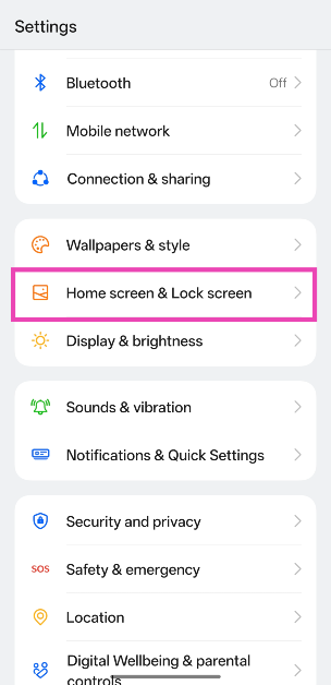 Etapa 7:Volte paraConfiguraçõese selecioneTela inicial e tela de bloqueio.