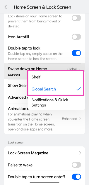 Etapa 10:Se você quiser manter o gesto de deslizar para baixo na aba de notificações e nas configurações rápidas, ative o botão de alternância ao lado deMostrar pesquisa na parte inferior.