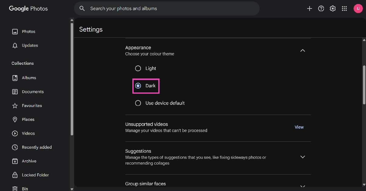 Ative o modo escuro no Google Fotos