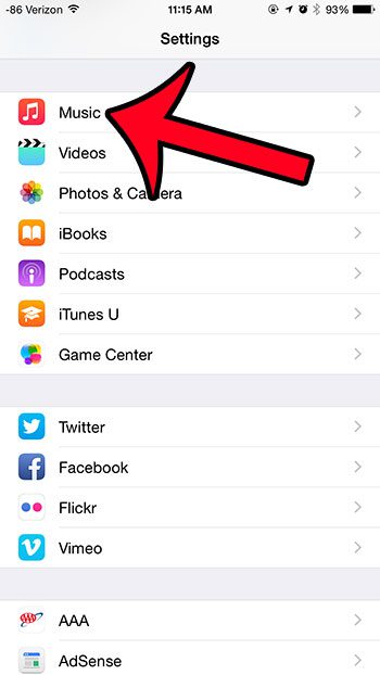 Passo 2: Role para baixo e selecione oMúsicaopção.