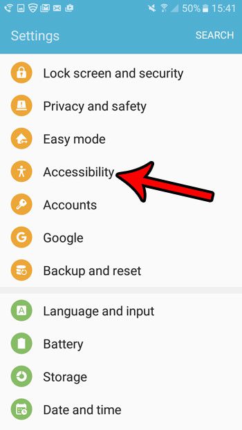 Etapa 3: role para baixo e toque noAcessibilidadeopção.