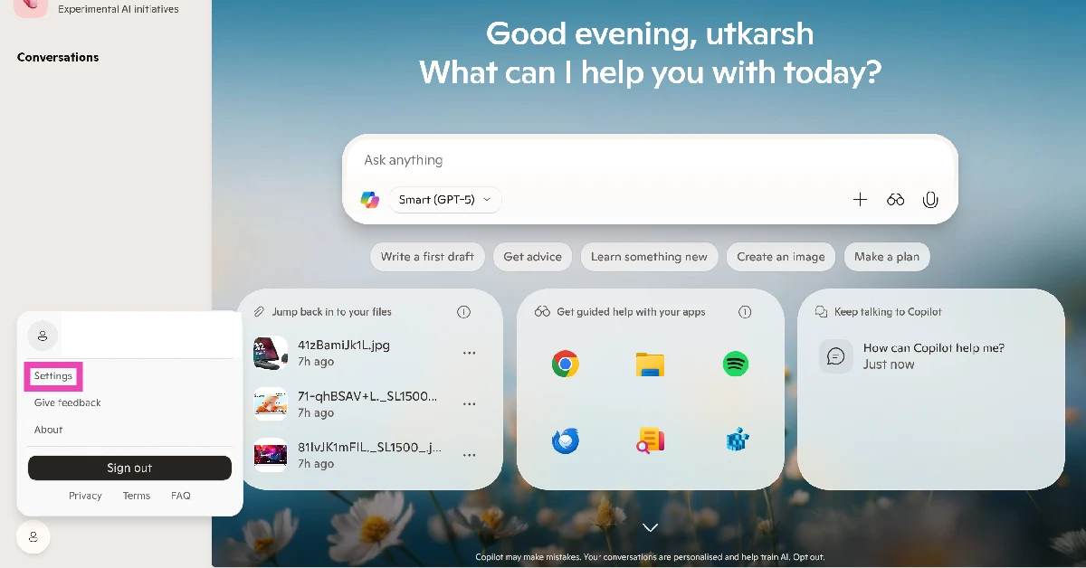 Etapa 1: lançamentooAplicativo copilotono seu PC clicando em seu ícone na barra de tarefas ou pressionandoJanelas + C.