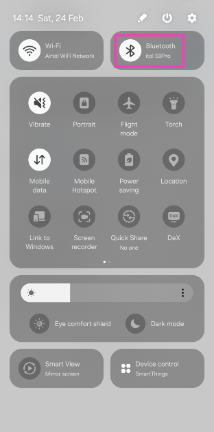 Etapa 1:Deslize para baixo na barra de status e mantenha pressionado oBloco Bluetoothno menu Configurações rápidas.