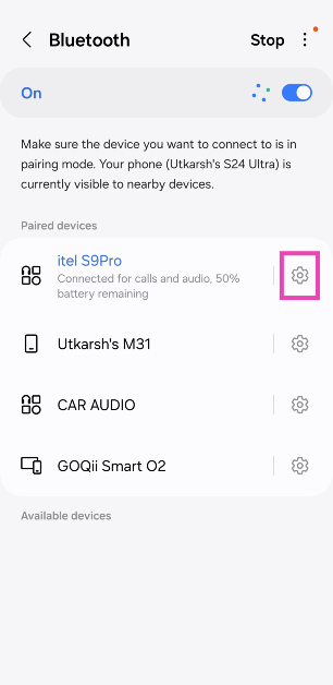 Vá paraConfigurações>Conexões>Bluetooth, clique no ícone de engrenagem próximo ao fone de ouvido Bluetooth conectado e selecione seu codec de áudio preferido na página seguinte.