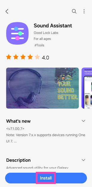 Etapa 1: DownloadeinstalaroAplicativo assistente de somda Loja Galaxy.