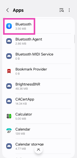Etapa 3:Role para baixo e selecioneBluetooth.