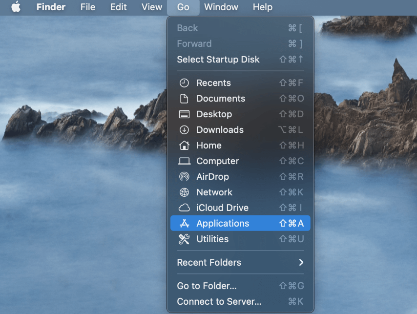 Para começar, abra seuaplicações pastae localizarVapor. Você pode encontrar a pasta de aplicativos clicando noIrmenu suspenso na barra de menu superior.