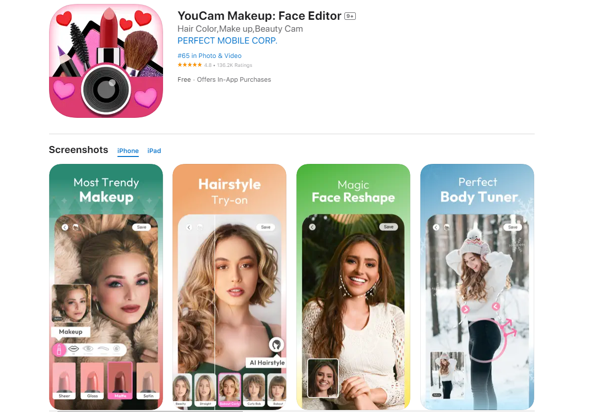 1. Baixe e instale o aplicativo Youcam Makeup no seu iPhone ou Android.