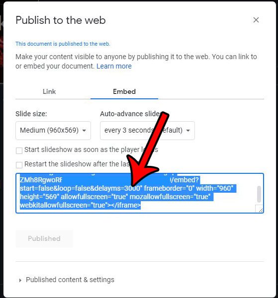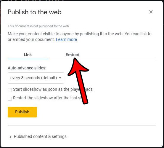 Como publicar um arquivo do Apresentações Google e obter o código para incorporá-lo em uma página da web
