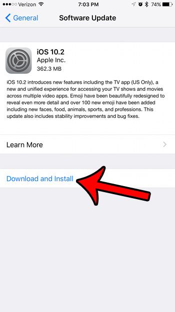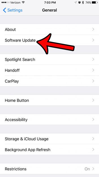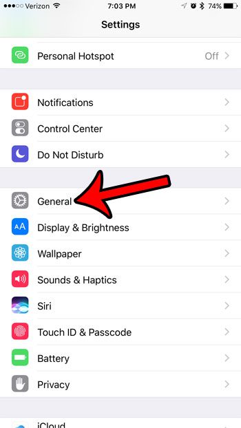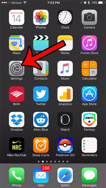 As etapas abaixo mostrarão onde encontrar e instalar a atualização do iOS 10.2 para o seu iPhone 7. Observe que esta atualização tem quase 400 MB, então você precisará de um pouco de espaço livre no seu dispositivo. Leia nosso guia completo para excluir itens do seu iPhone para ver itens que você pode remover do seu dispositivo para aumentar o espaço disponível.